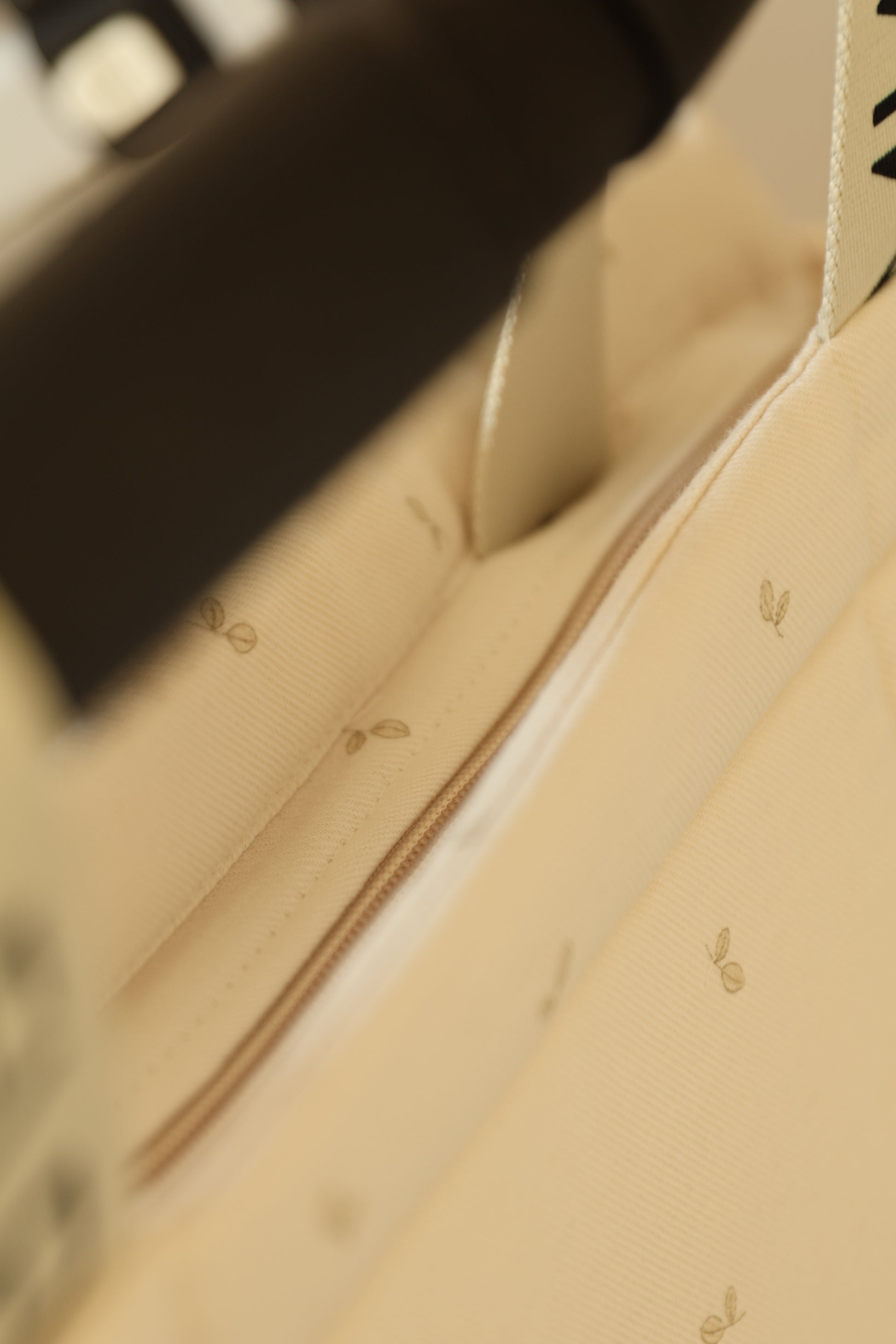 Conçu avec notre nouveau tissu Cello Oliva, un tissu au fond écru et imprimé feuilles d'olivier dans un vert militaire très doux, doux et élégant.