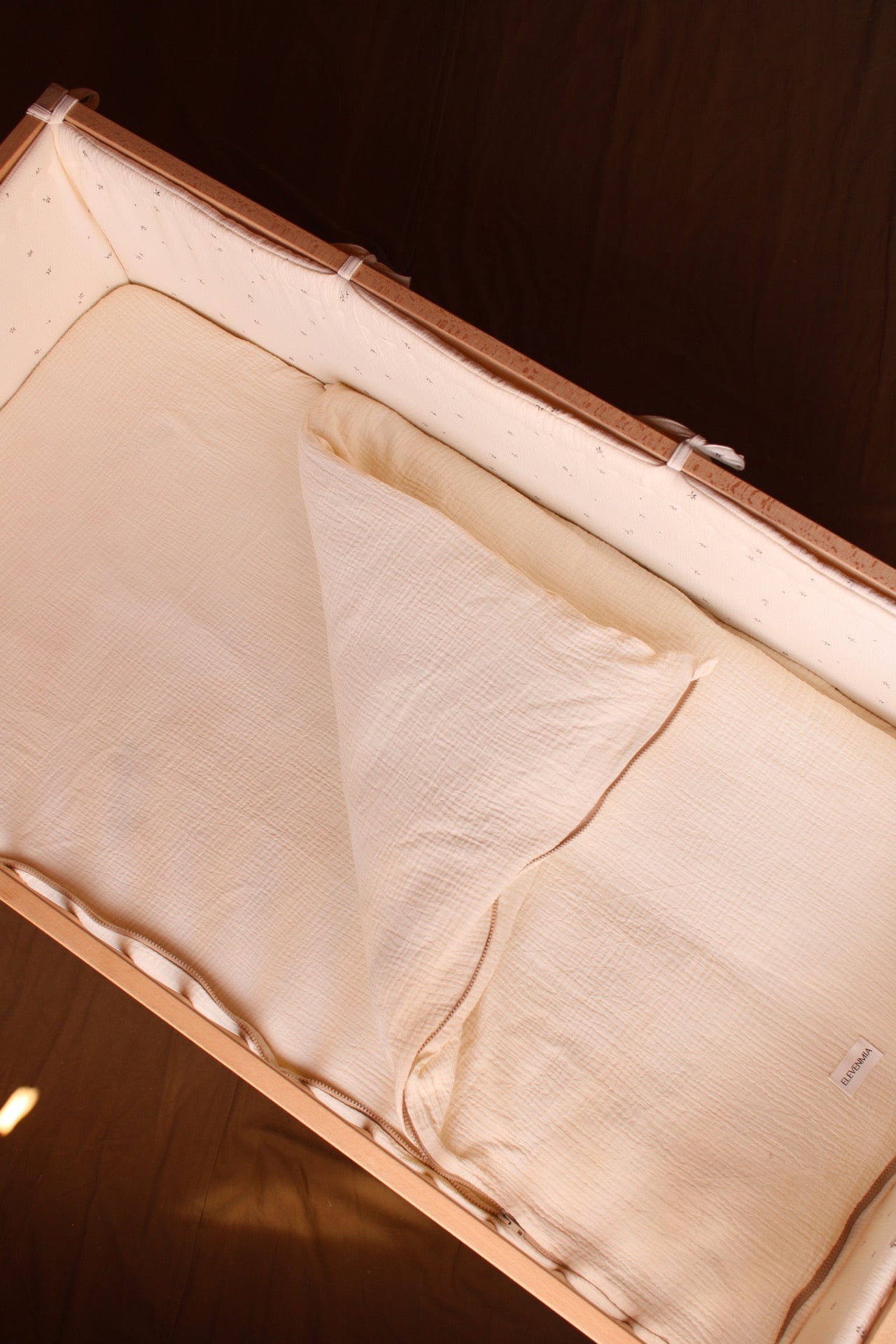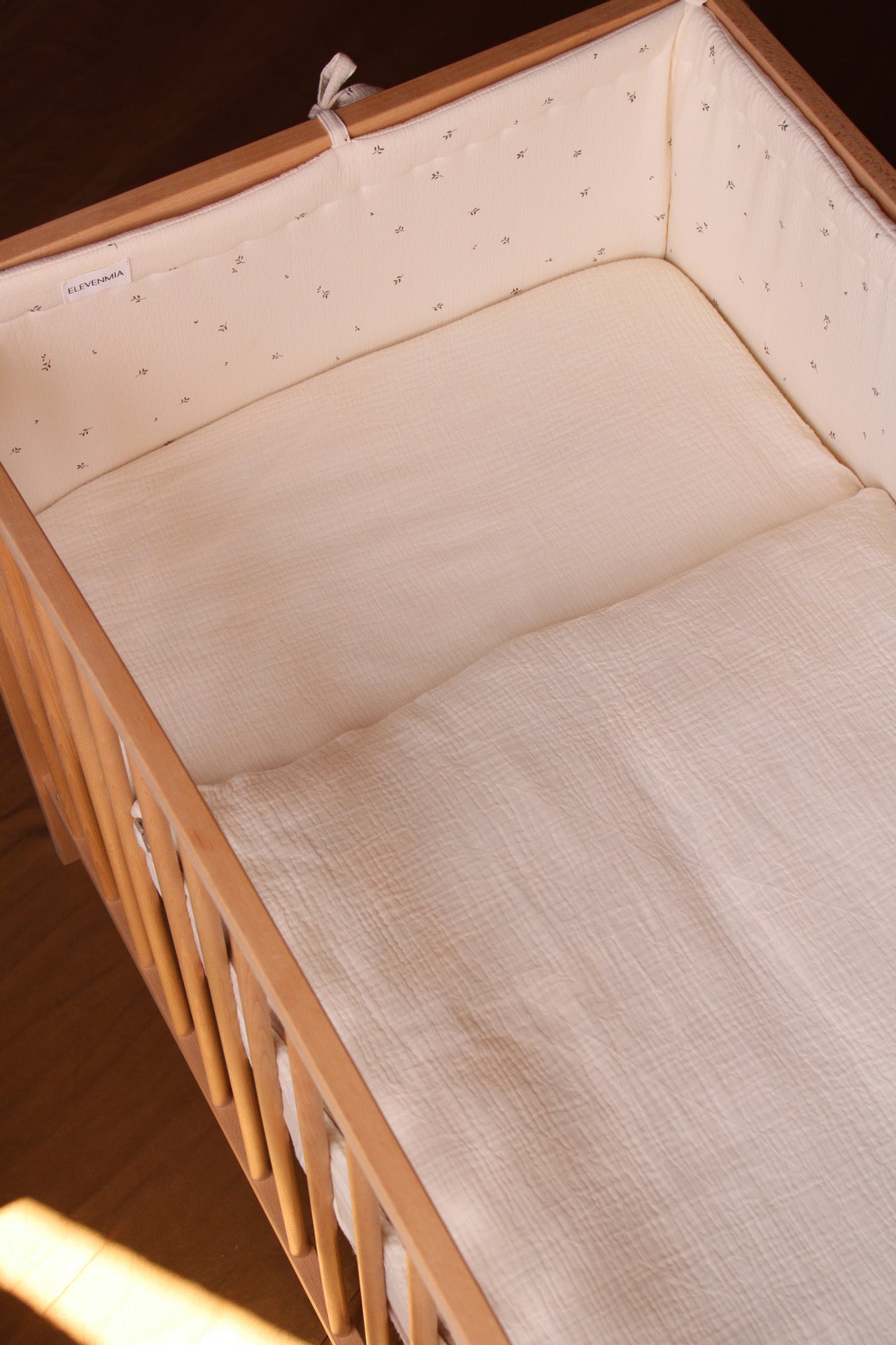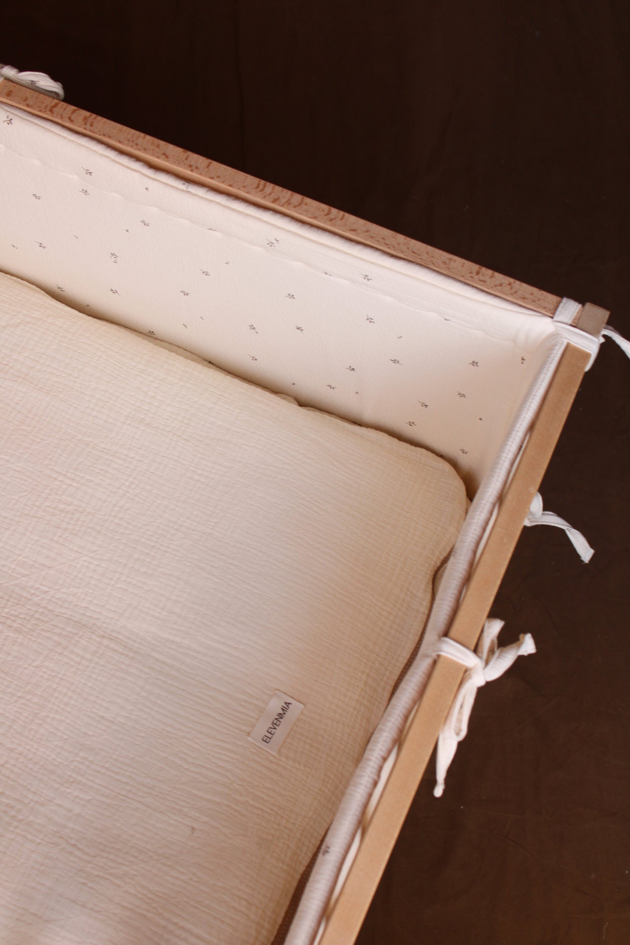 Grâce à la couverture complète du périmètre du berceau, nous garantissons que si le bébé bouge ou se retourne, il ne se cognera pas. Offre un aspect fini et protégé.
