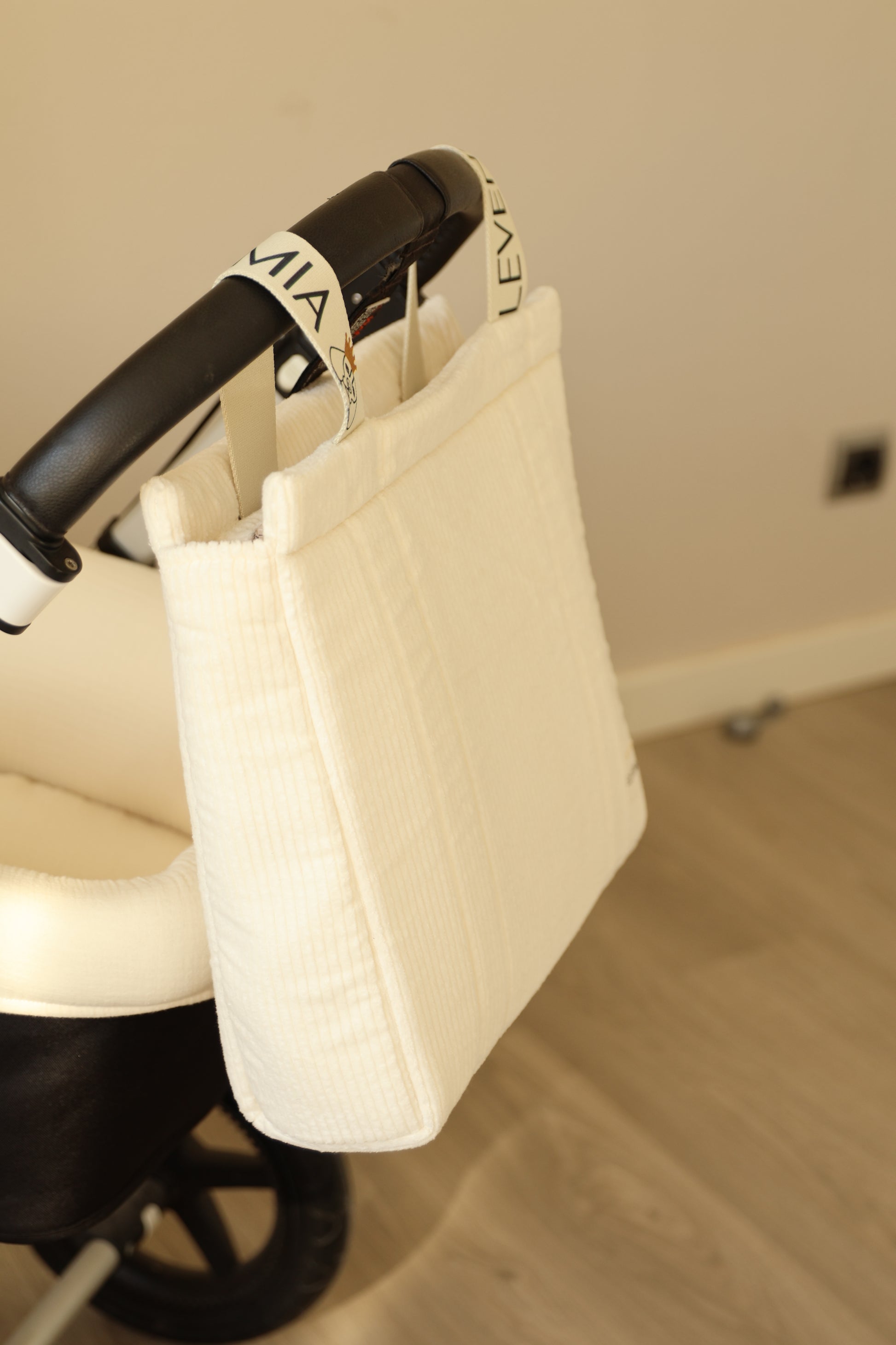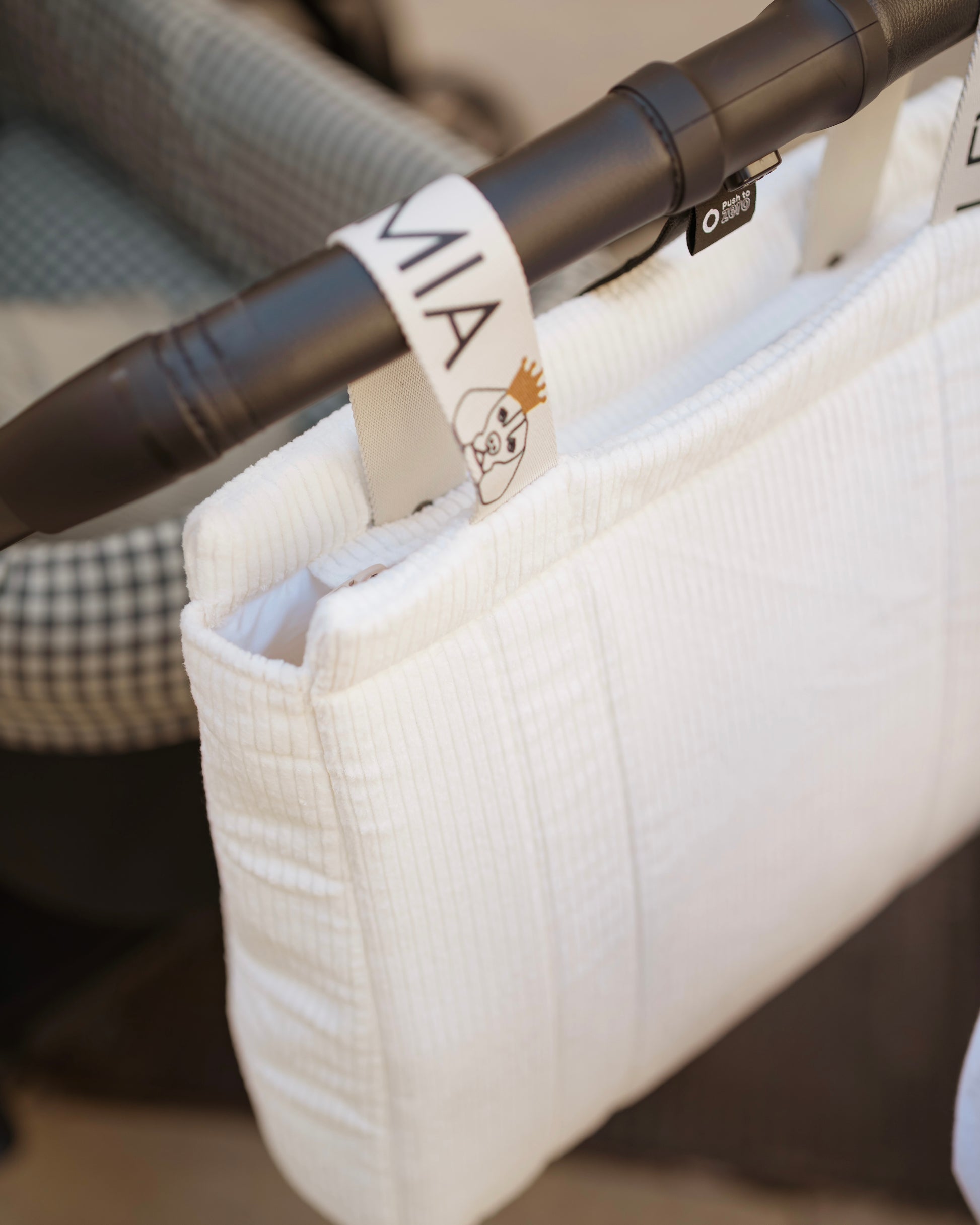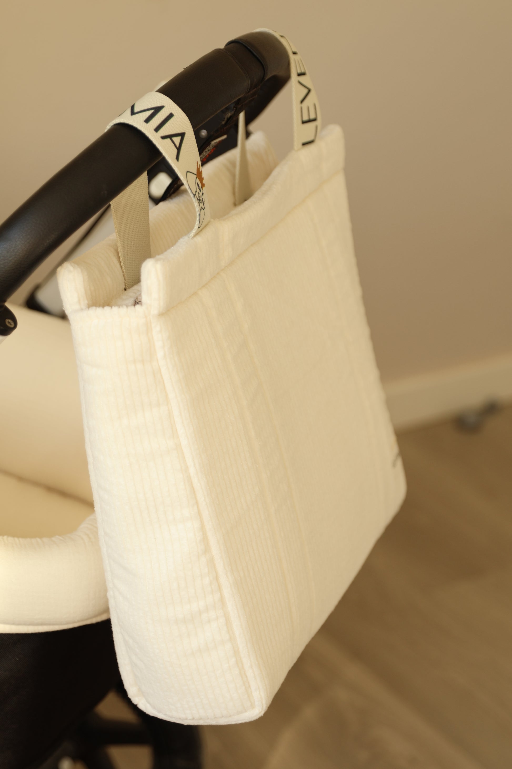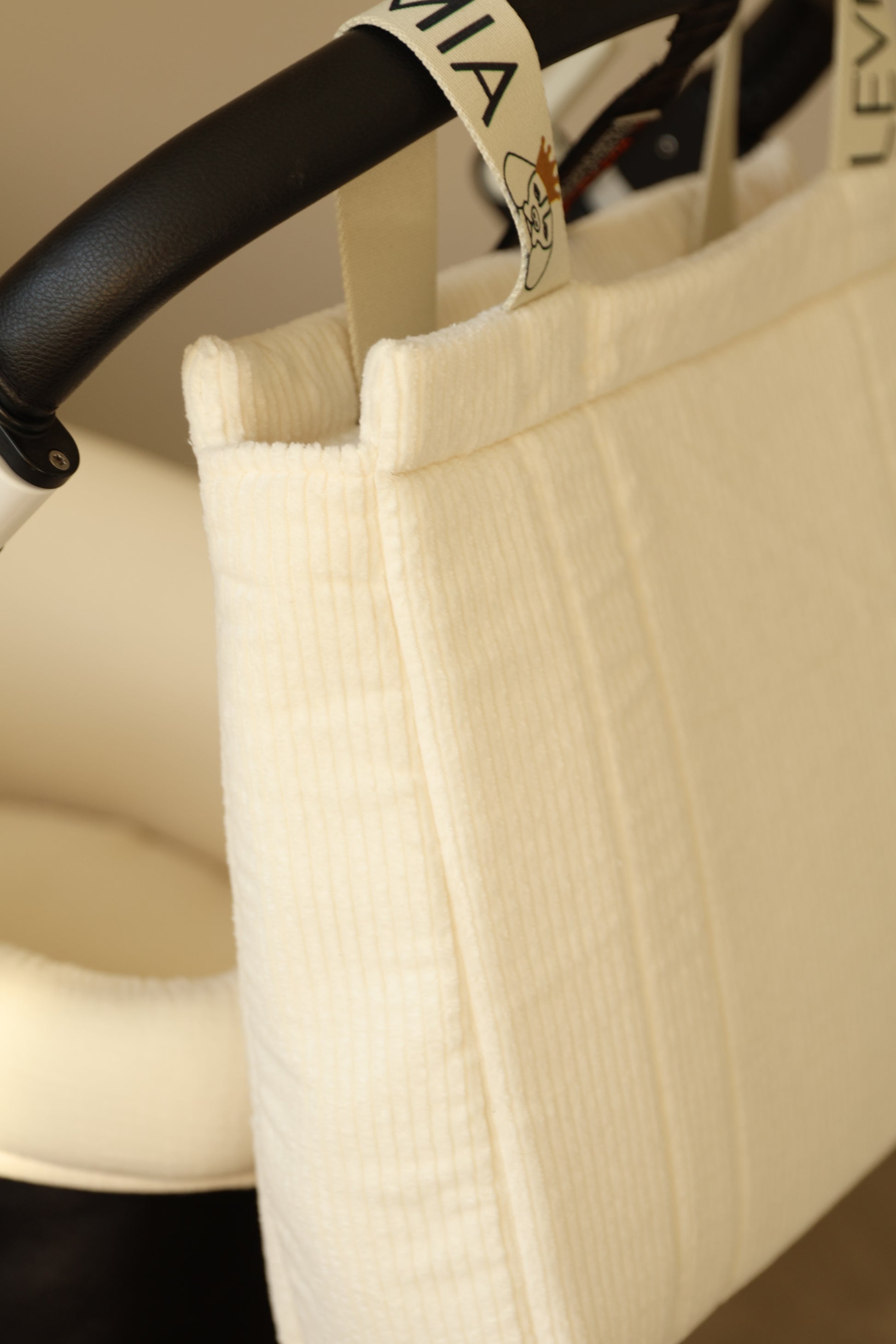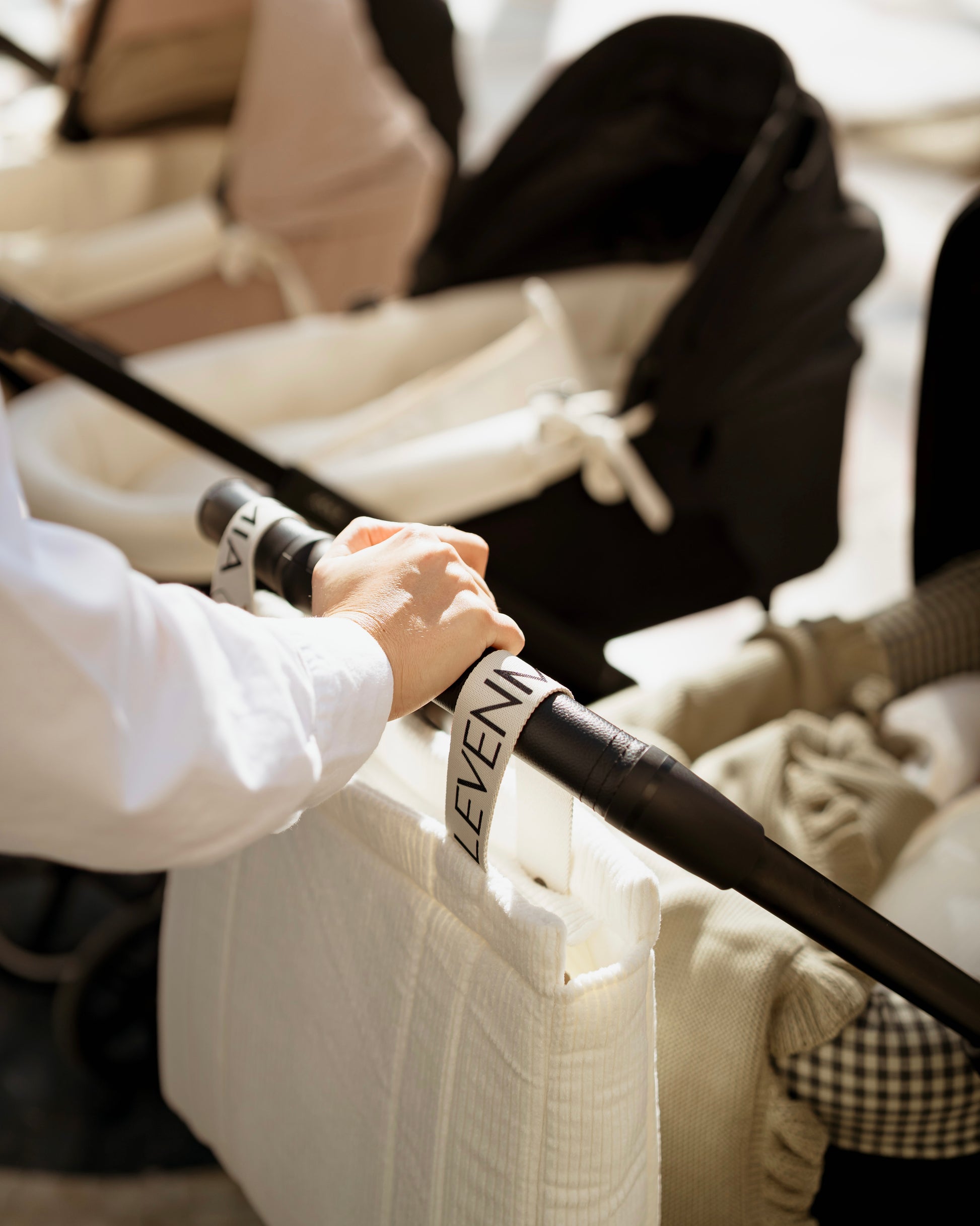 Asas de cuerda personalizadas con ajuste de "click" corchete a la barra del cochecito.