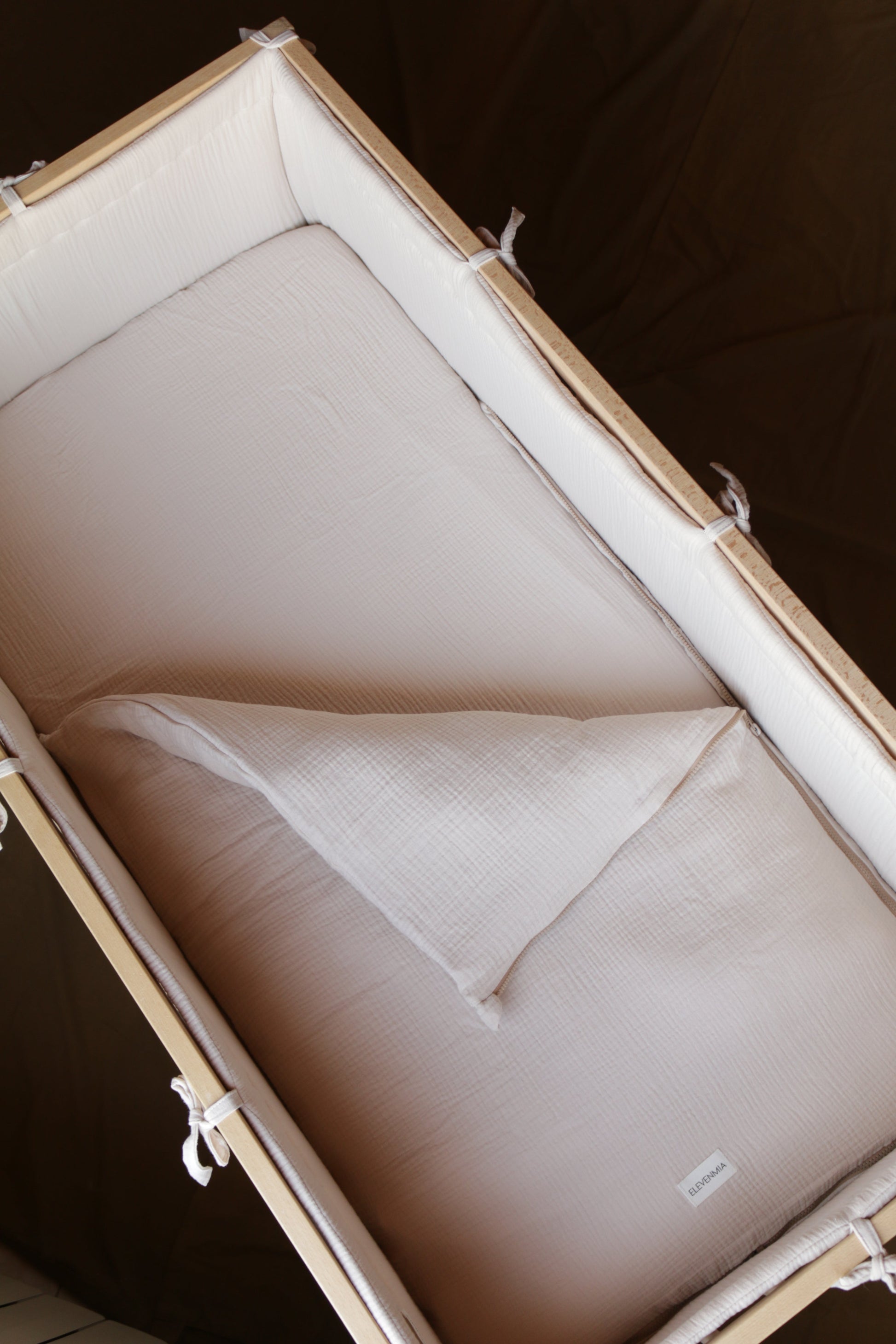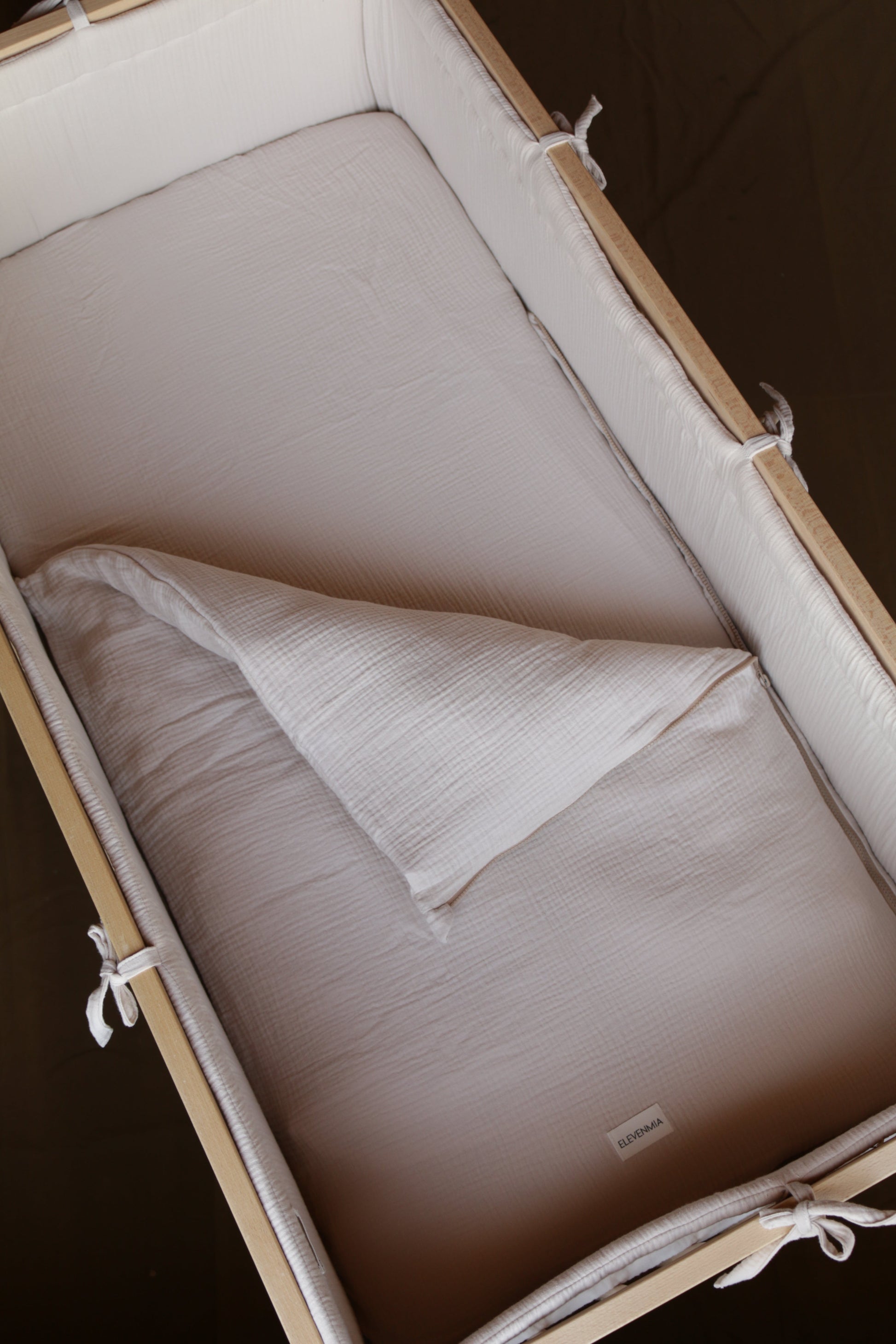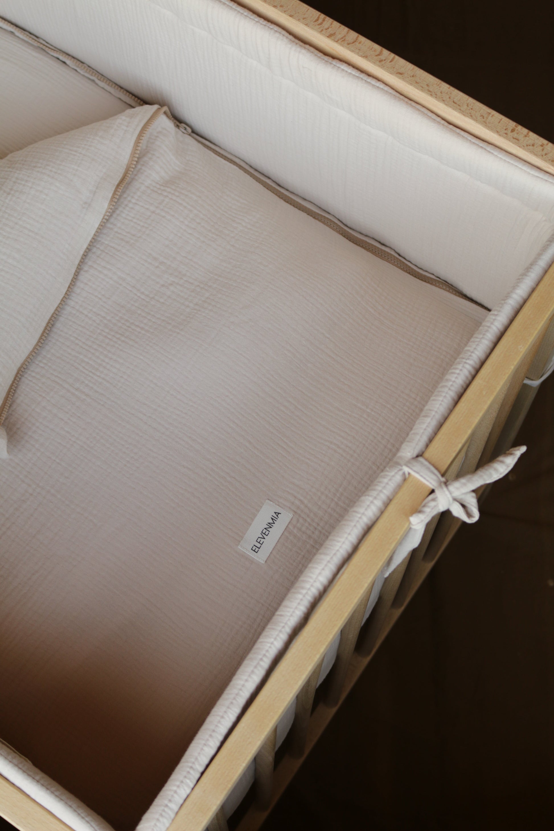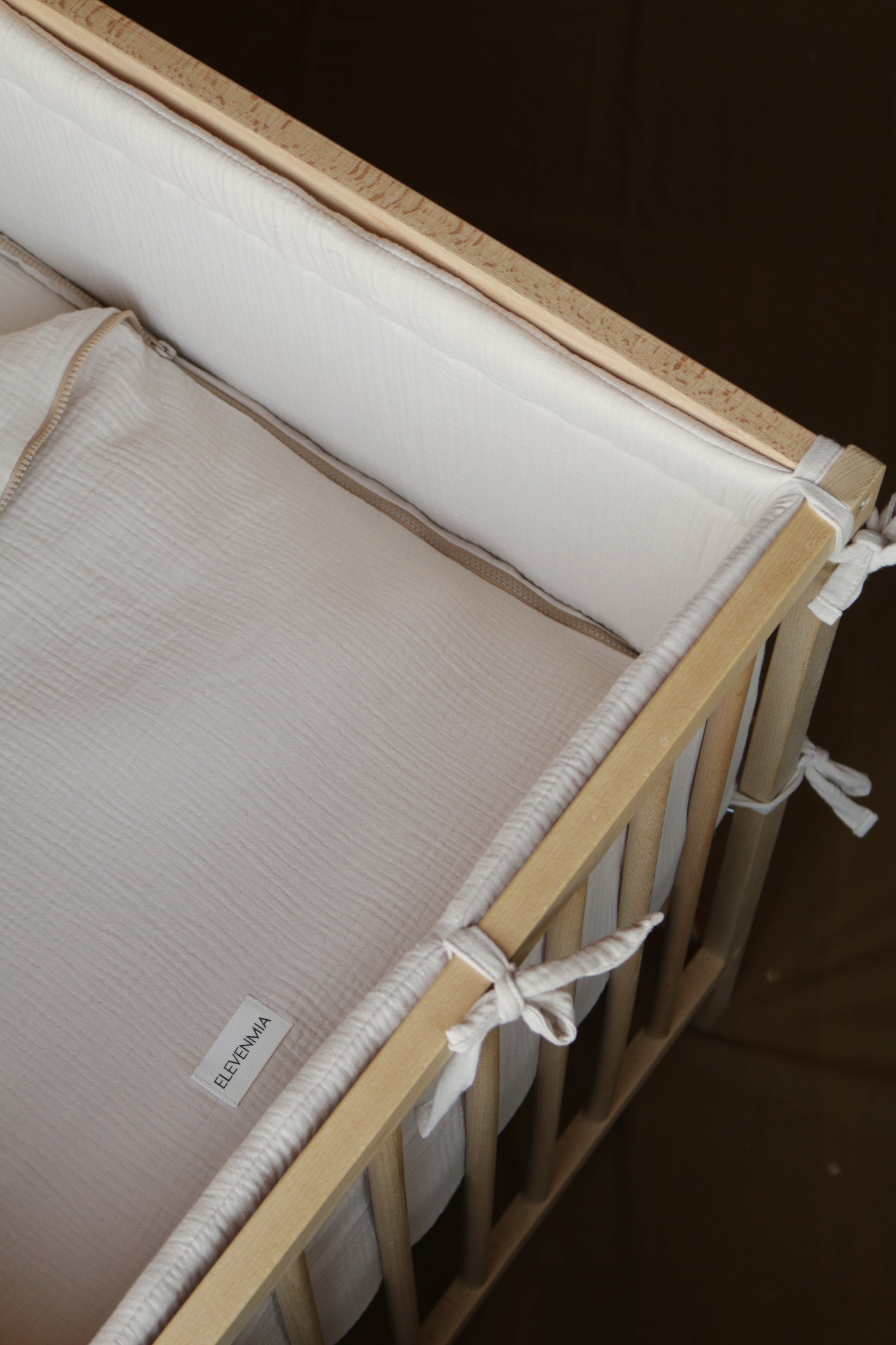 Con la cobertura total de la cuna en todo su perímetro, nos asegura, que si el bebe se mueve o gira, no se golpeará. Aporta un look acabado y protegido.