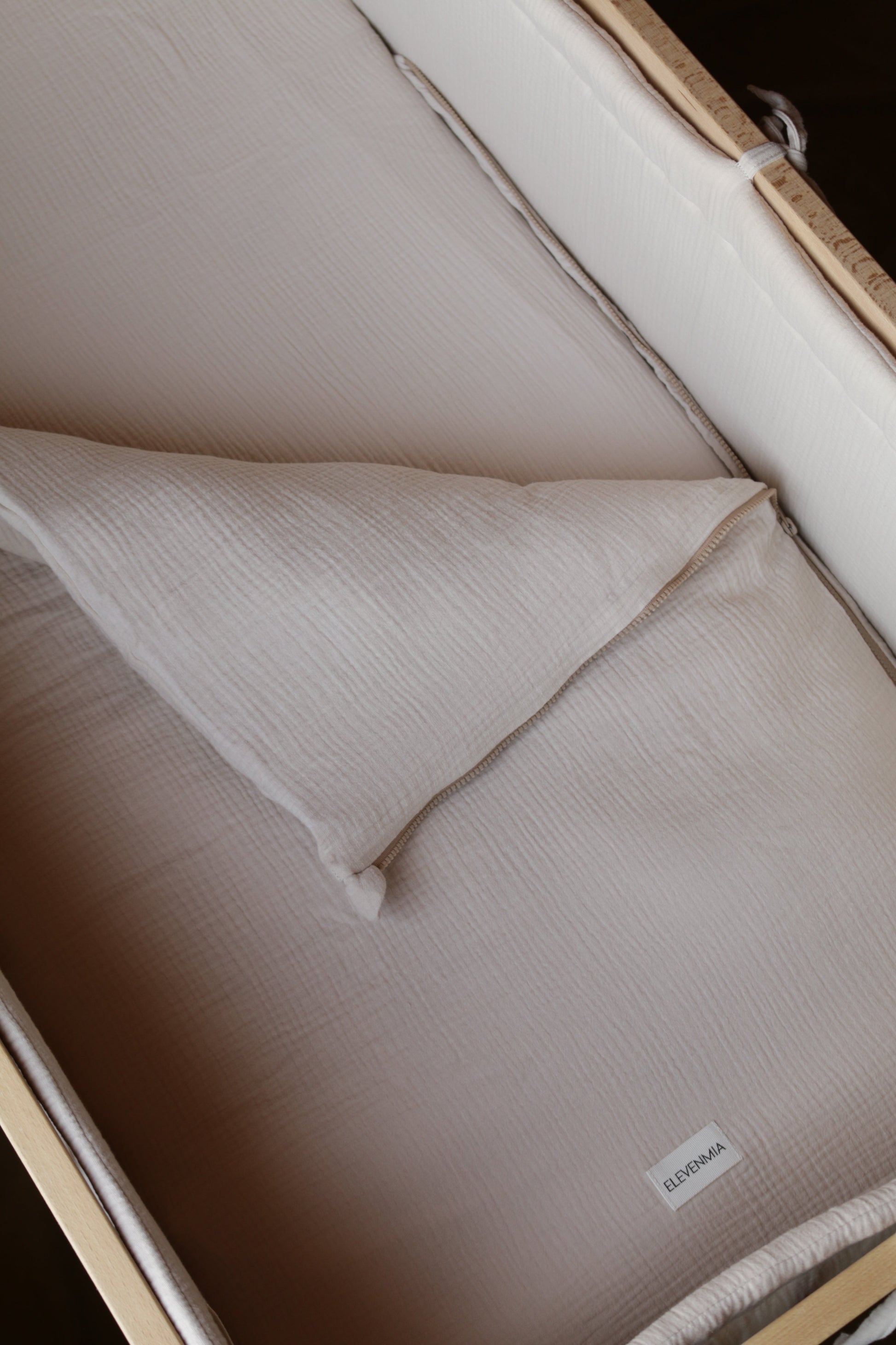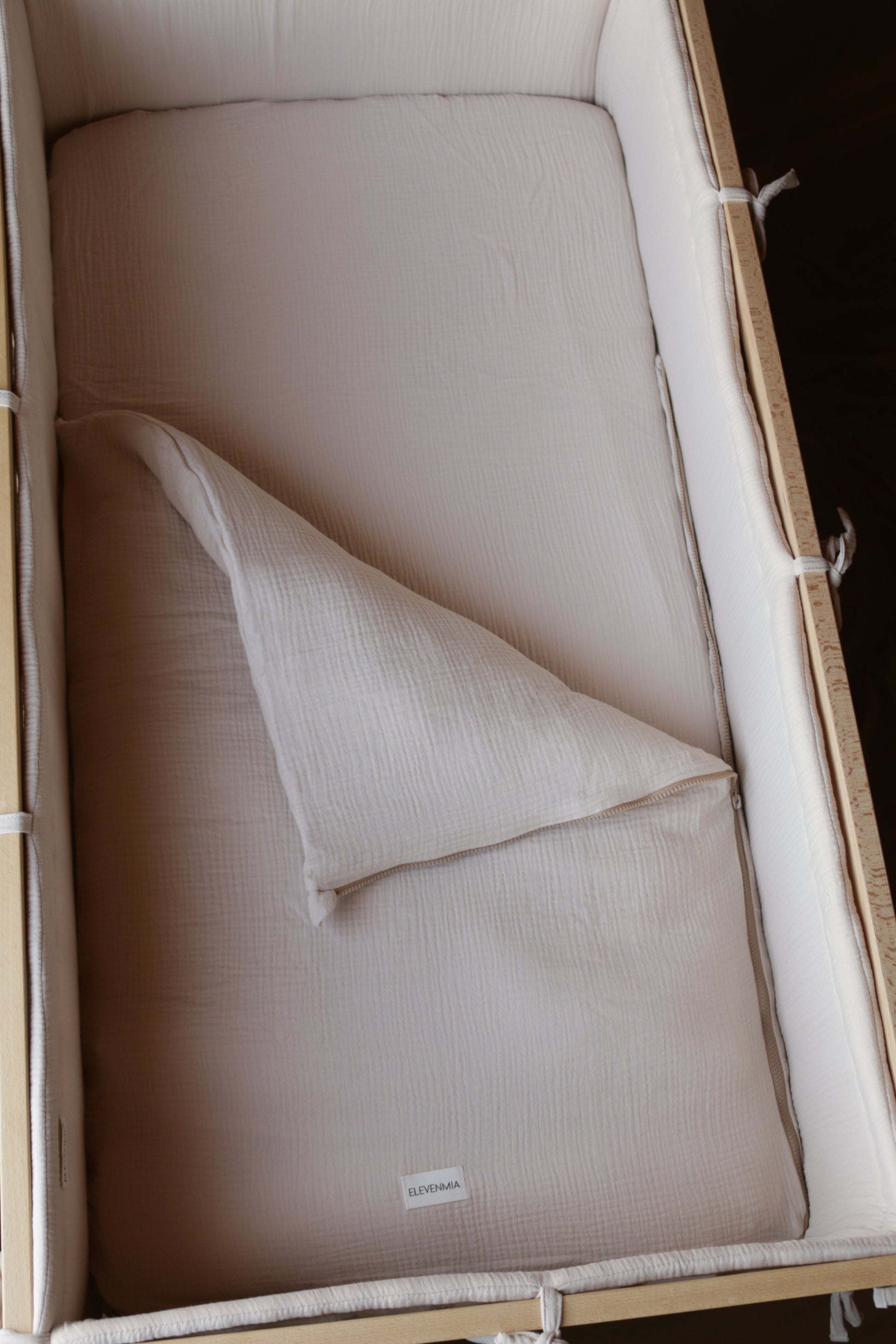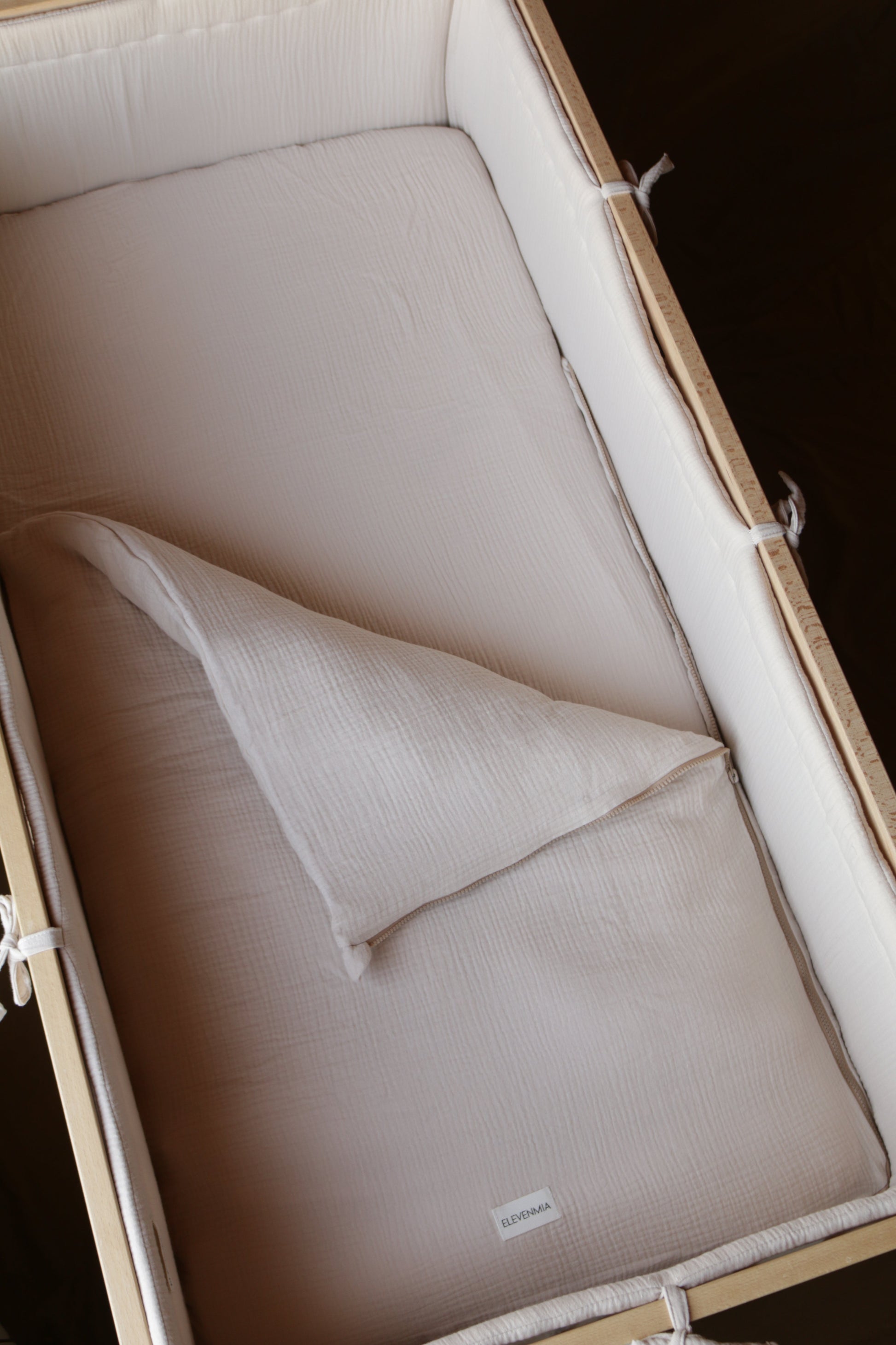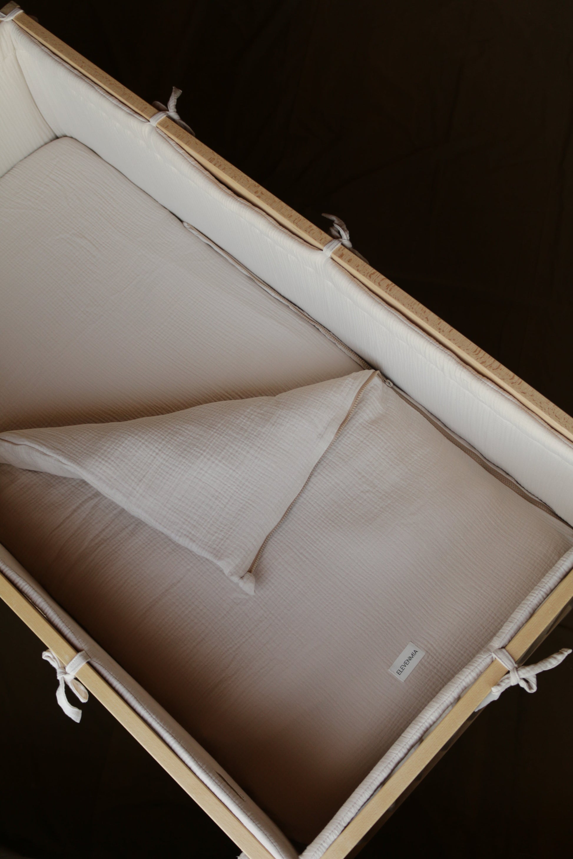 Con la cobertura total de la cuna en todo su perímetro, nos asegura, que si el bebe se mueve o gira, no se golpeará. Aporta un look acabado y protegido.