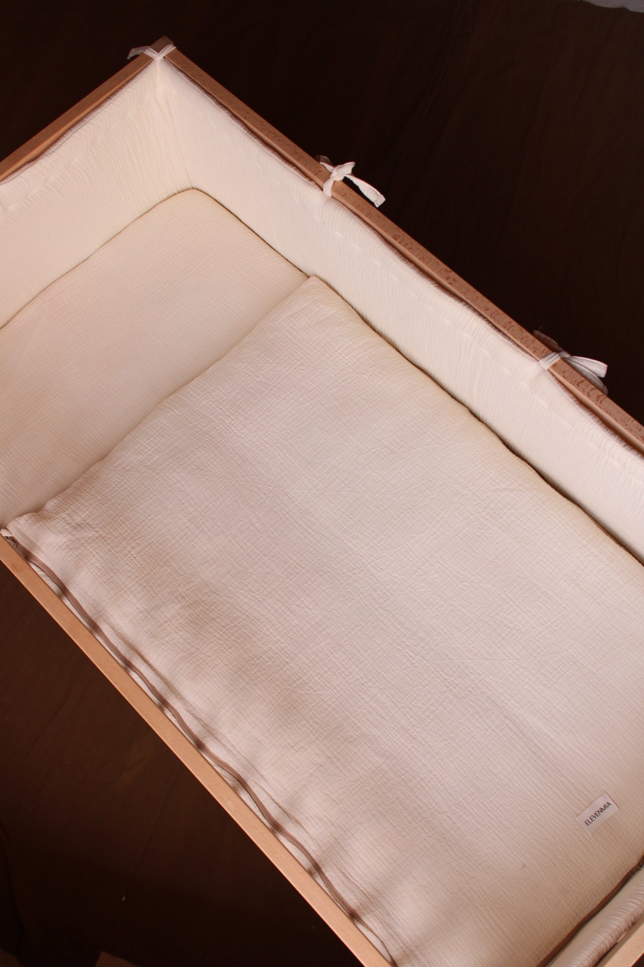 Con la cobertura total de la cuna en todo su perímetro, nos asegura, que si el bebe se mueve o gira, no se golpeará. Aporta un look acabado y protegido.