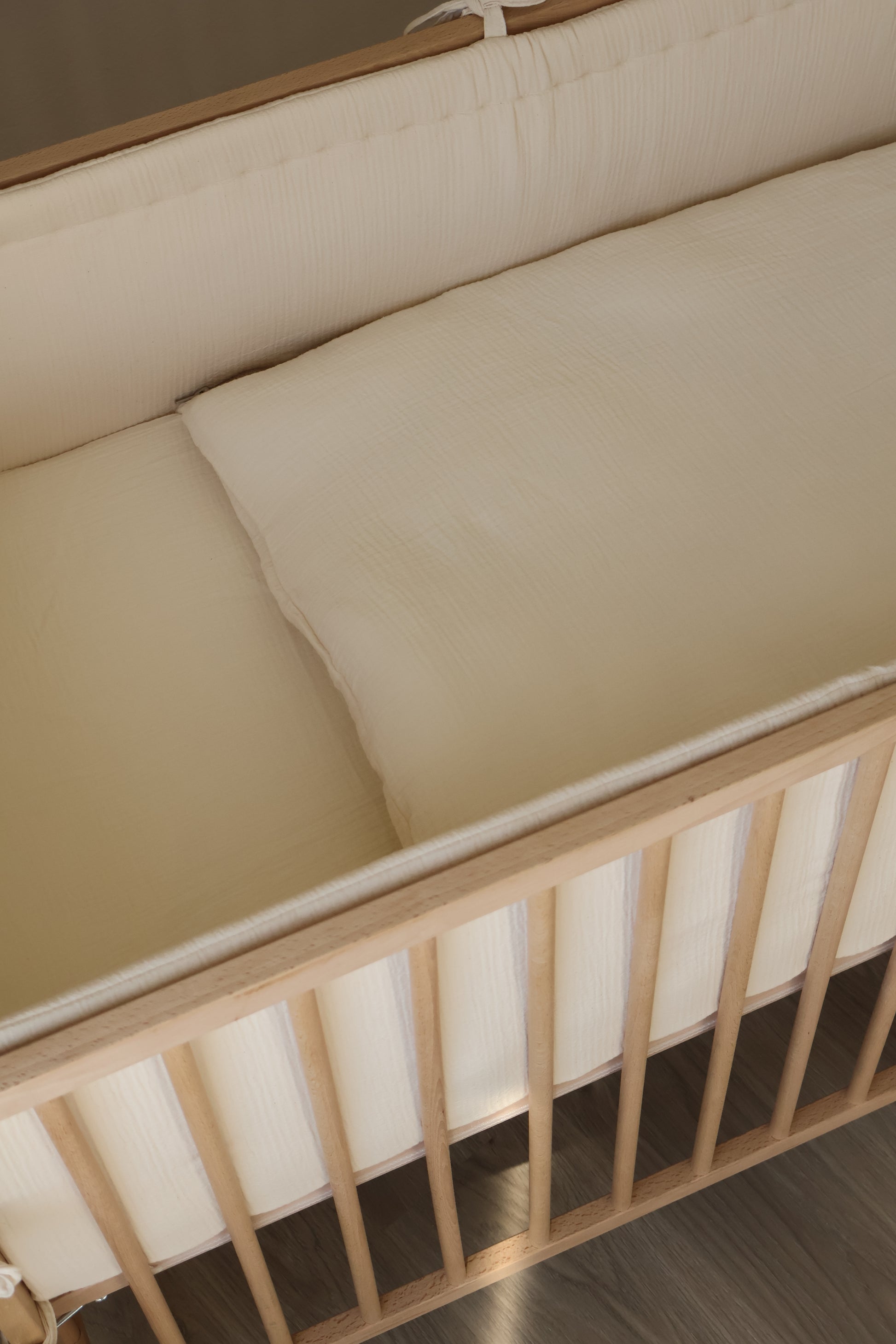Con la cobertura total de la cuna en todo su perímetro, nos asegura, que si el bebe se mueve o gira, no se golpeará. Aporta un look acabado y protegido.