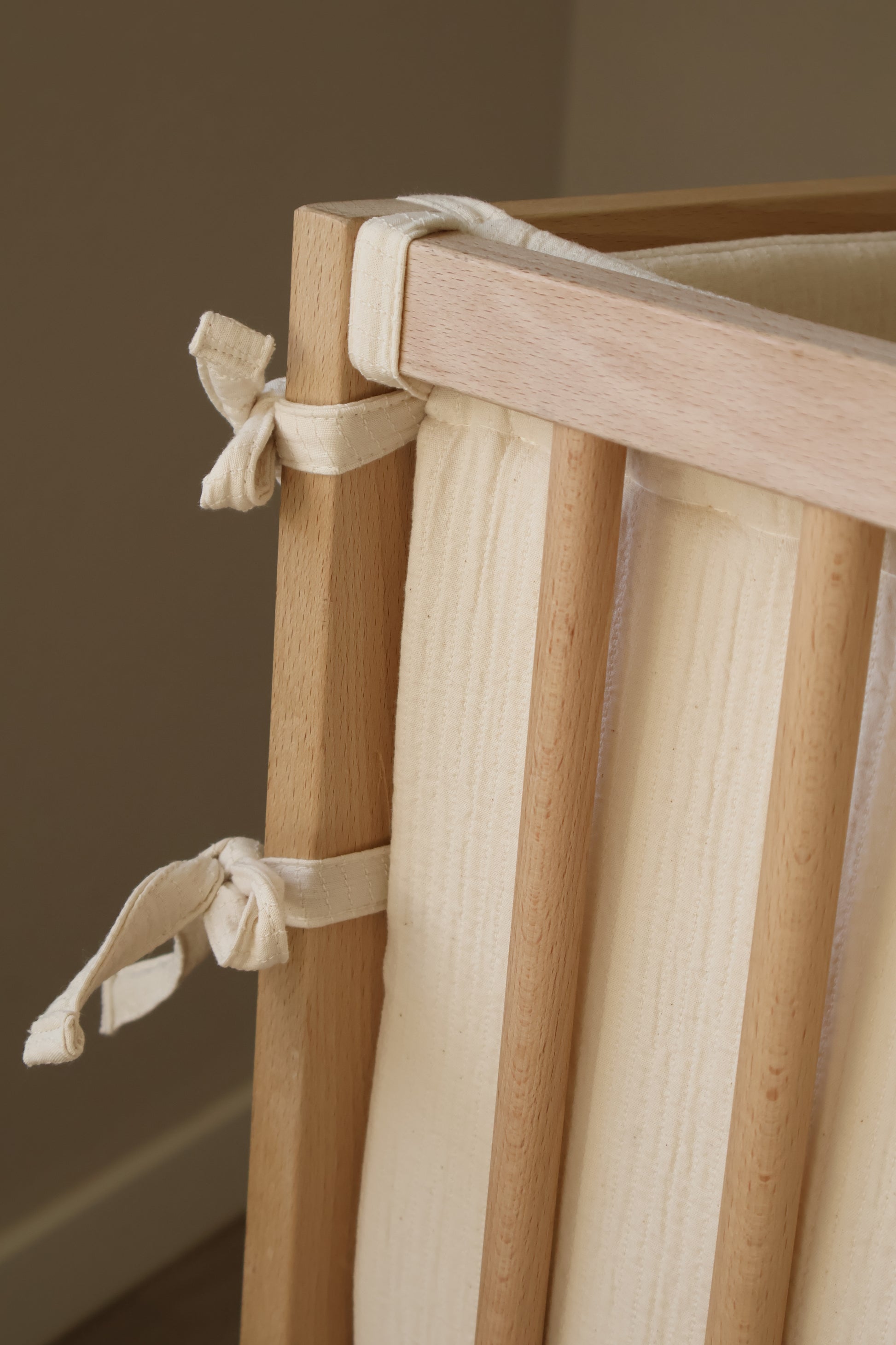 Nuestro nuevo protector es ideal para usar mientras hacemos colecho, quitando la parte individual. Además, también podemos usarlo si no hacemos colecho, simplemente colocando todos los laterales haciendo que sea un protector total. De esta manera cubrirá y protegerá todo el perímetro de la cuna dejando barrotes ocultos.