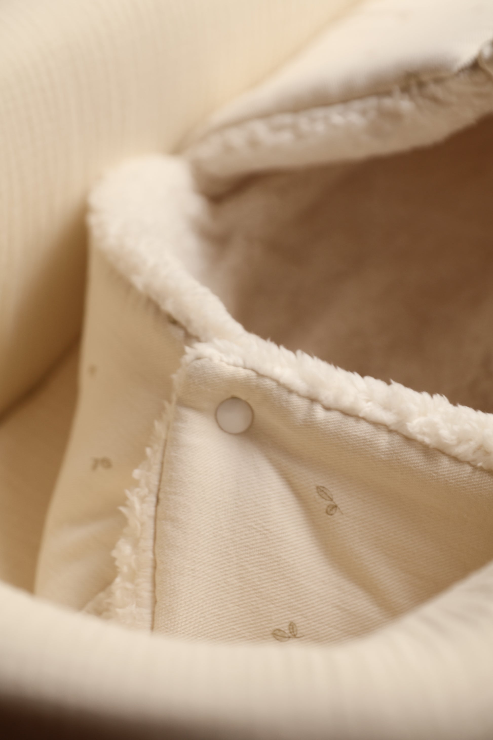Apertura en la parte superior, esto nos ayudara a poder cerrarlo cuando creamos oportuno o abrirlo cuando nuestro peque se agobie. Patrón diseñado para abrir y doblar la parte superior para levantar un pelín la cabecita y que nuestros peques puedan expulsar babas o reflujos sin problema.