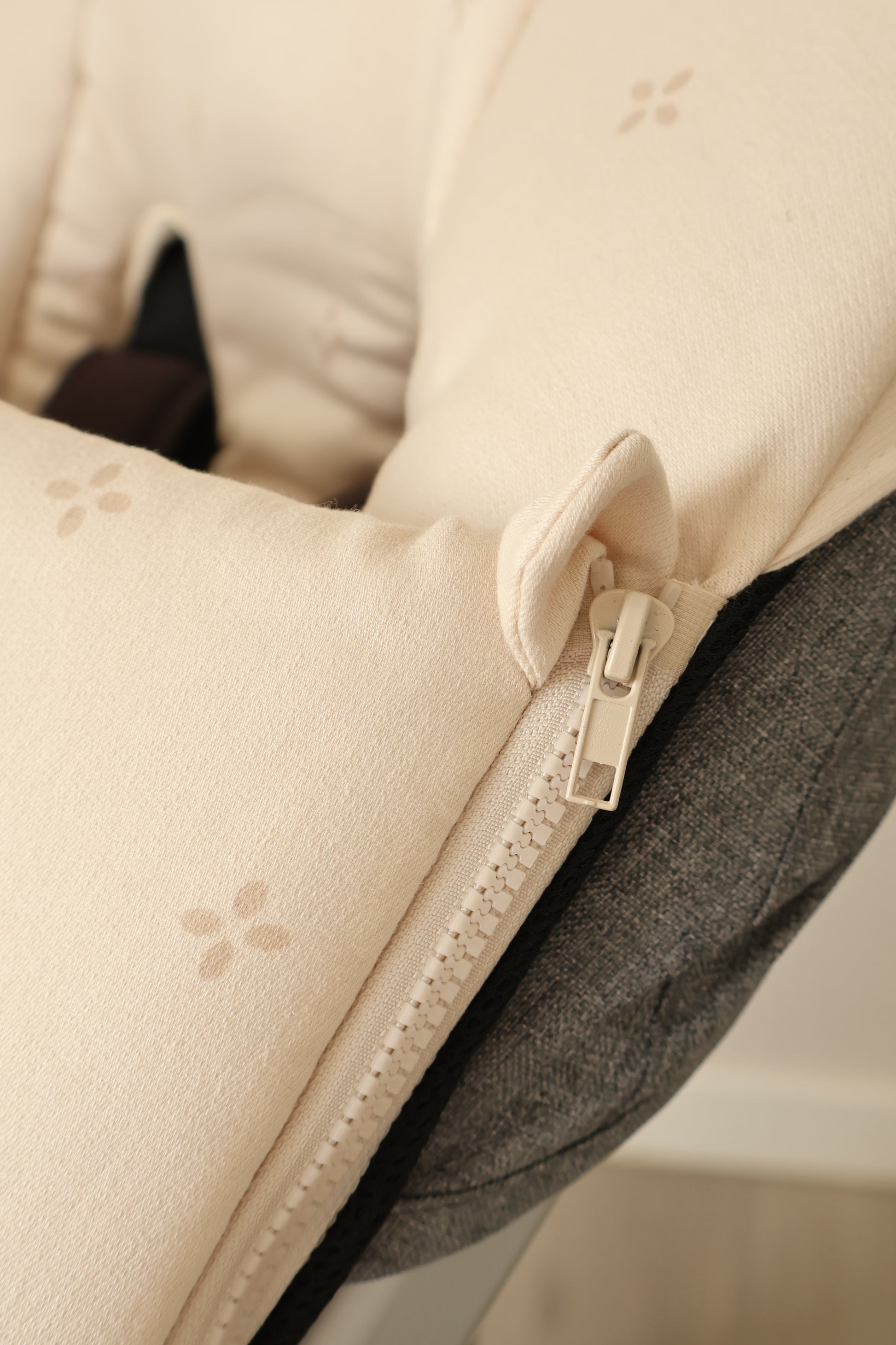 Solapa y tiras para ajuste al respaldo del cochecito y ajuste en la zona de los pies.